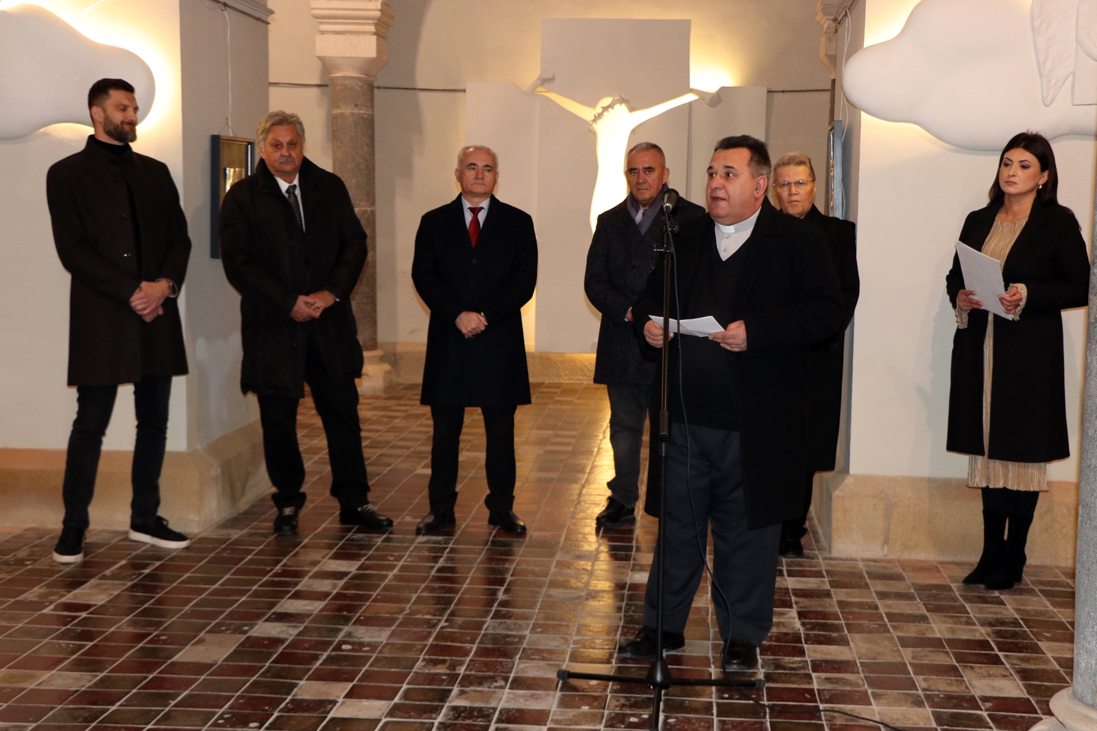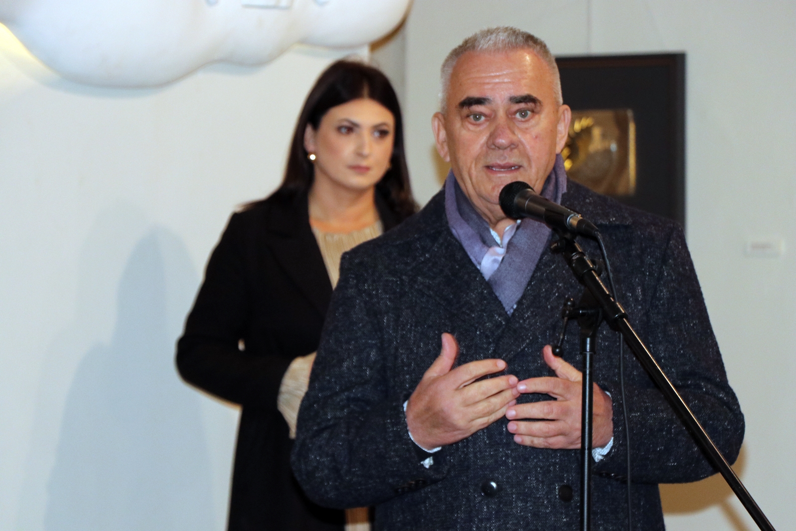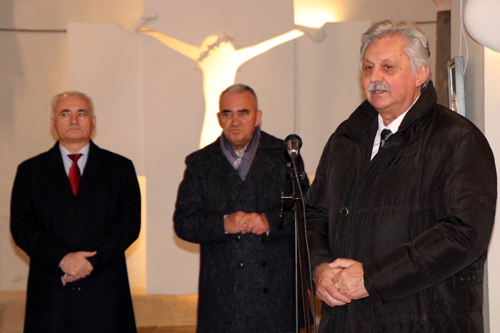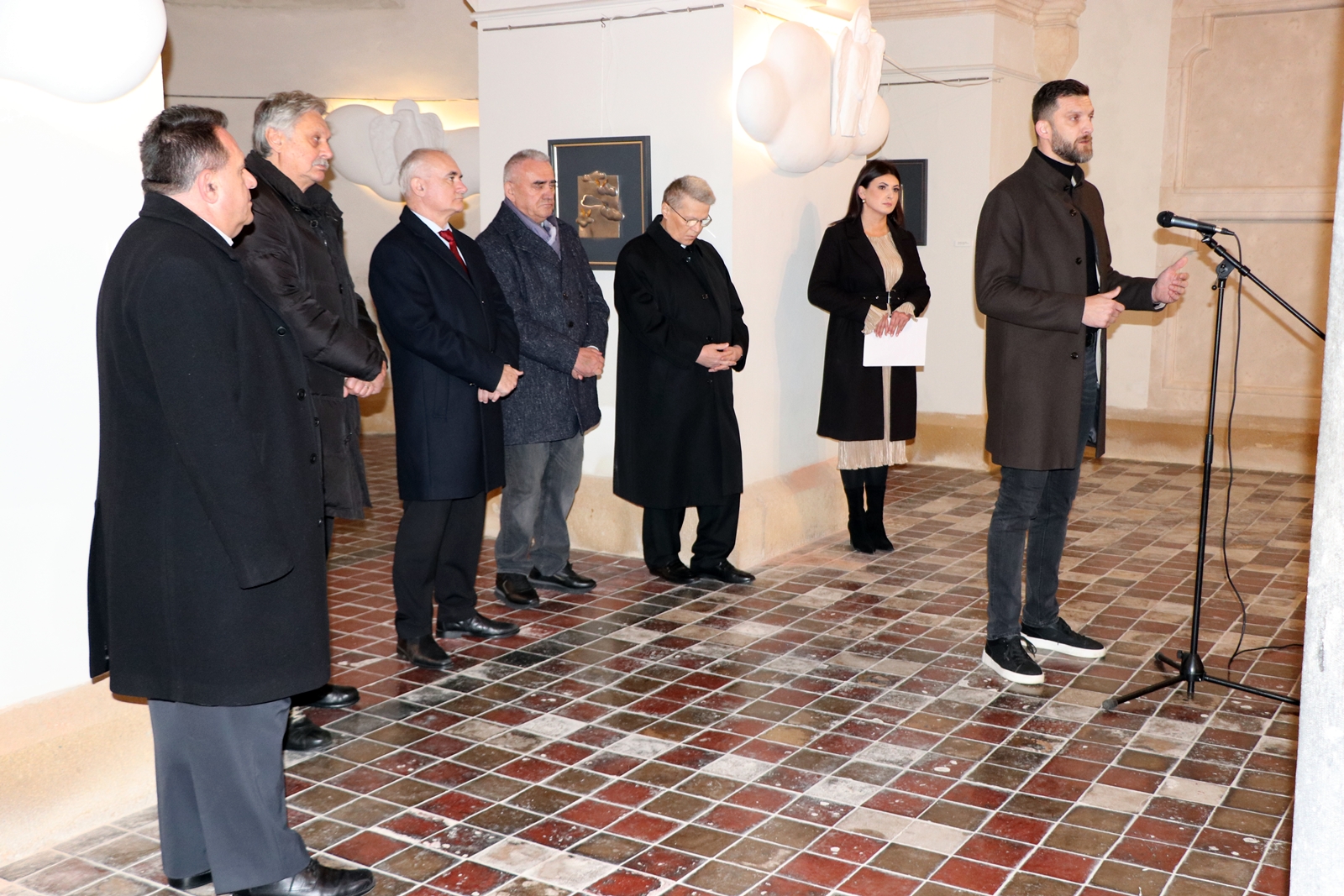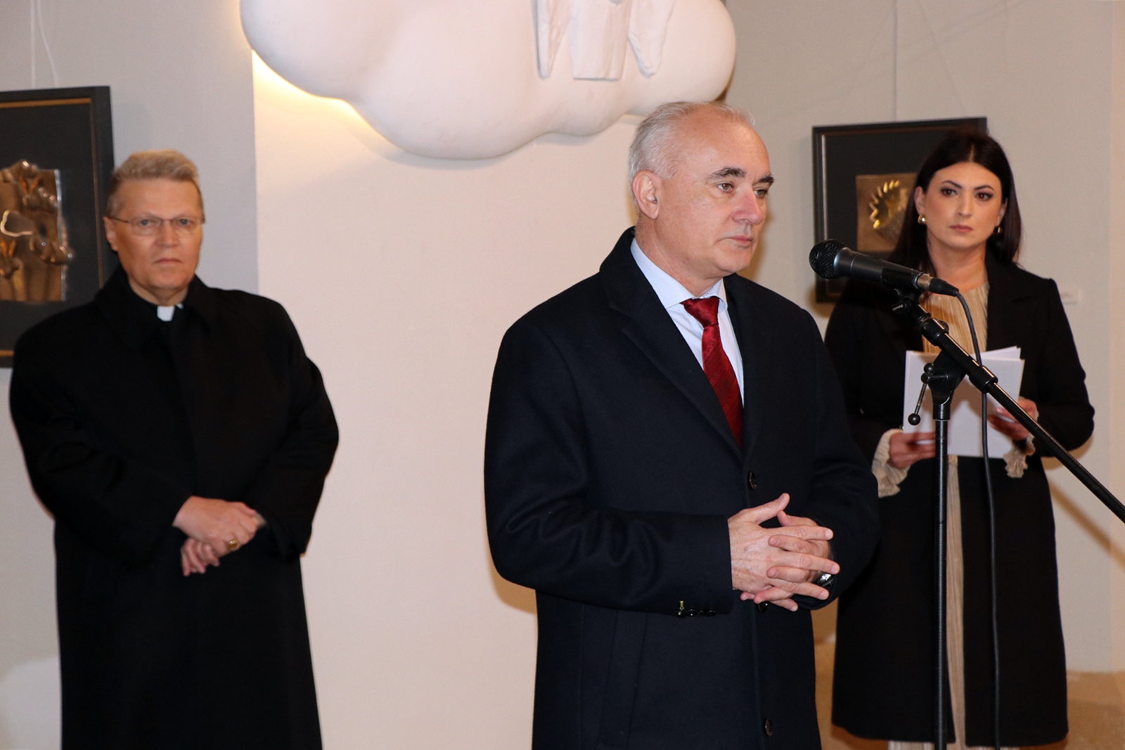 Kustosica Spomen-muzeja biskupa J. J. Strossmayera u Đakovu Irena Ivkić govorila je o suradnji institucija na projektu „Strossmayerovim putem“. Uvodno obraćanje održao je prof. dr. sc. Vladimir Dugalić s Katoličkog bogoslovnog fakulteta u Đakovu, istaknuvši kako se pred publikom nalazi tek dio autorova stvaralačkog opusa, koji obuhvaća više od 700 djela nastalih u 40 godina rada. Svaka njegova skulptura, kako je rekao, predstavlja dio njegova kreda te umjetnički izraz njegova vjerovanja, kroz spoj tradicionalne i moderne forme, posebno kroz igru svjetla i tame.